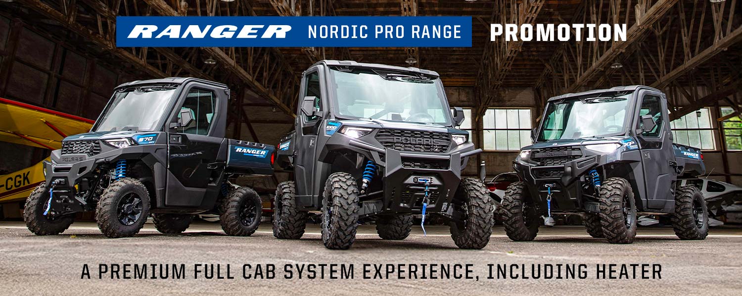 Take on winter, work and the toughest terrain with confidence as the new Nordic Pro models come with heated cabs as standard. And, for a limited time only, Polaris is offering €2,000 off selected models in the Ranger Nordic Pro range when purchased through participating authorised dealers.